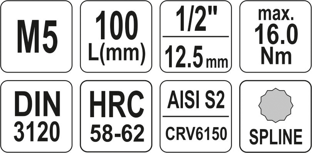 KLUCZ NASADOWY TRZPIENIOWY SPLINE 1/2" M5 100mm YATO YT-04350