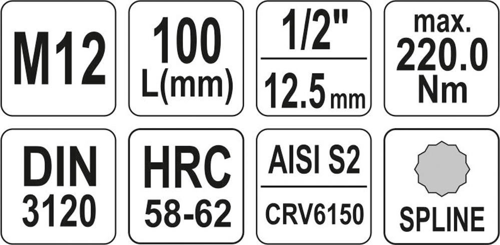 KLUCZ NASADOWY TRZPIENIOWY SPLINE 1/2" M12 100mm YATO YT-04354