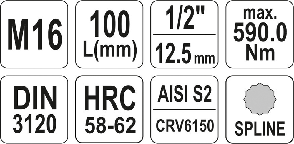KLUCZ NASADOWY TRZPIENIOWY SPLINE 1/2" M16 100mm YATO YT-04356
