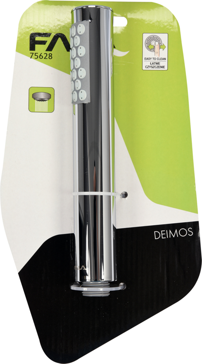 Jednofunkcyjna słuchawka prysznicowa Deimos to elegancki dodatek w łazience urządzonej w minimalistycznym stylu.Wykonana jest z trwałego i lekkiego tworzywa ABS przez co jest ona bardzo poręczna. Trwała warstwa błyszczącego chromu jest odporna na łuszczenie.