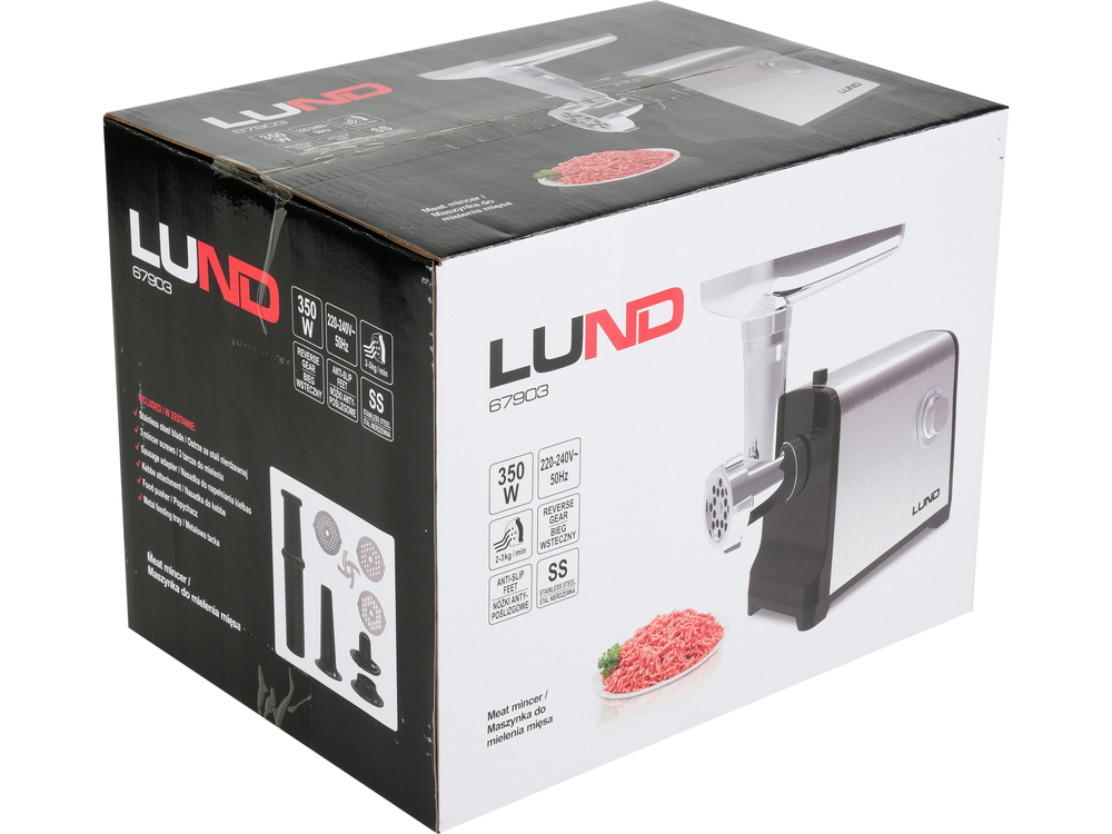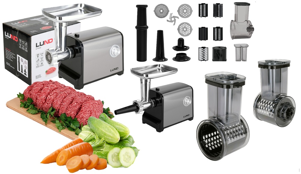 MASZYNKA DO MIELENIA MIĘSA NADZIEWARKA DO KIEŁBASY + SZATKOWNICA 67906 STAL NIERDZEWNA 350W LUND 67903
