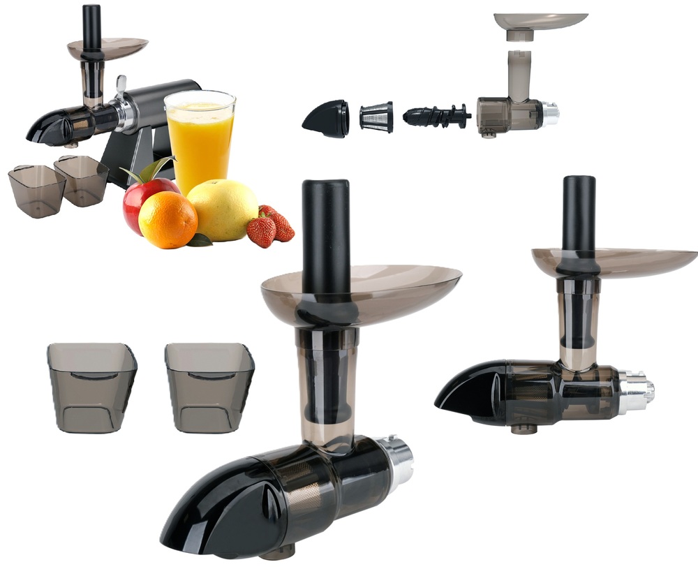Zawartość zestawu: korpus, tacka, świder, sitko do mielenia, popychacz, pojemnik na sok, pojemnik na wytłoki