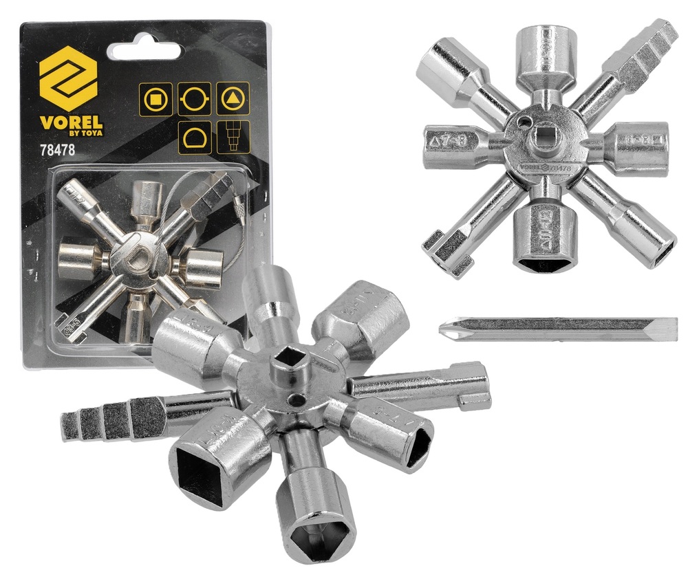 KLUCZ DO SZAFEK SKRZYNEK SERWISOWYCH TECHNICZNYCH Z LICZNIKAMI WODY GAZU PRĄDU 10w1 VOREL 78478