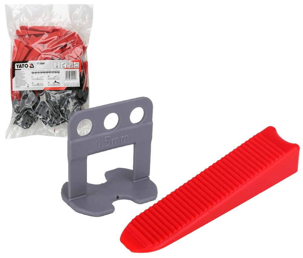 SYSTEM ZACISKÓW KLINÓW 50szt. KLIPSÓW 50szt. DO POZIOMOWANIA PŁYTEK GLAZURY 2mm YATO YT-36940