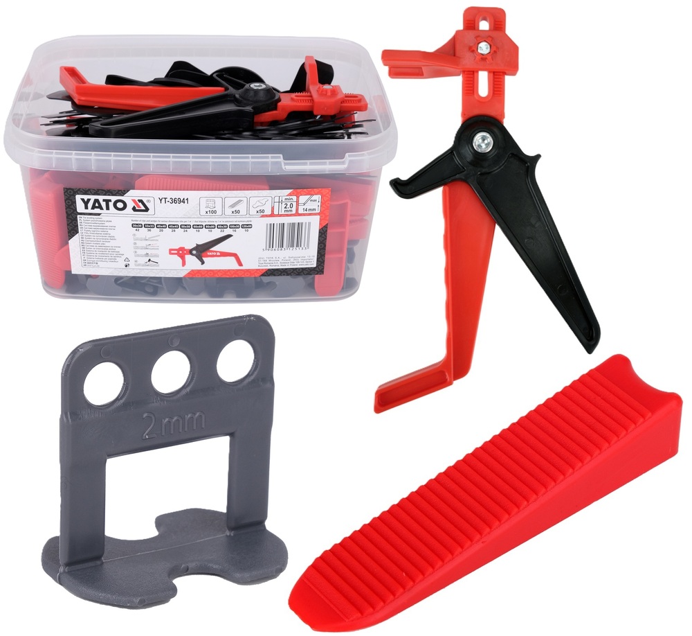 SYSTEM ZACISKÓW KLINÓW KLIPSÓW PODKŁADEK DO POZIOMOWANIA PŁYTEK GLAZURY + SZCZYPCE 200szt. 2mm YATO YT-36941