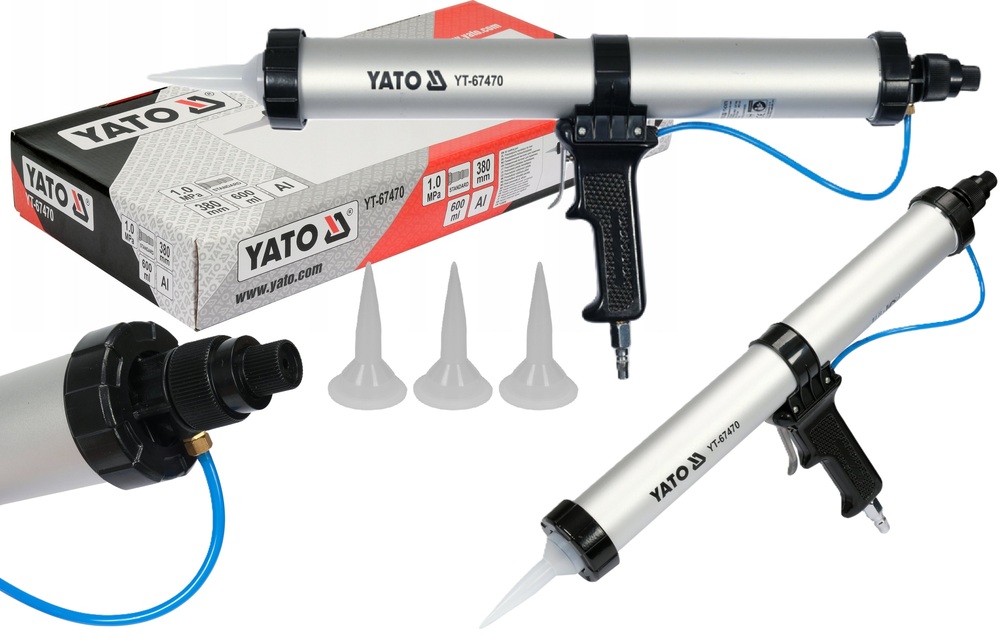 WYCISKACZ RUROWY PNEUMATYCZNY DO GĘSTYCH MAS KLEJU SILIKONU USZCZELNIACZY 600ml YATO YT-67470