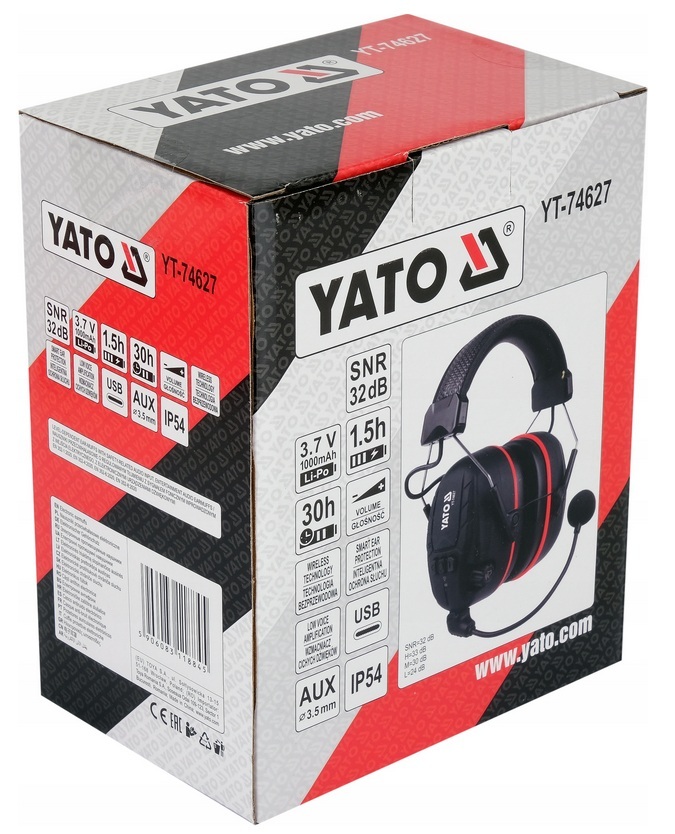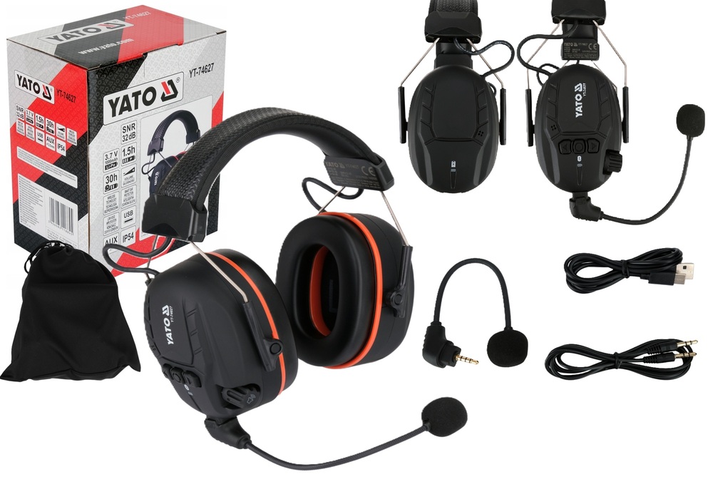 NAUSZNIKI SŁUCHAWKI PRZECIWHAŁASOWE OCHRONNE AKTYWNE ELEKTRONICZNE Z BLUETOOTH 32dB YATO YT-74627