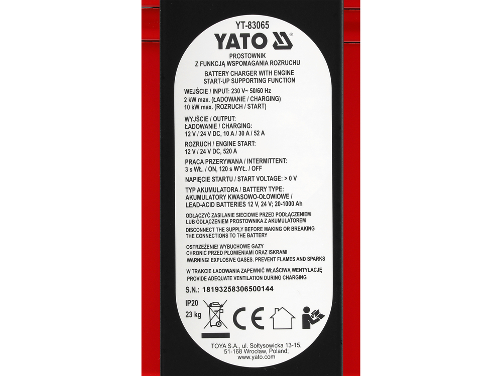 PROSTOWNIK Z ROZRUCHEM BOOSTER 20-1000Ah 12/24V YATO YT-83065
