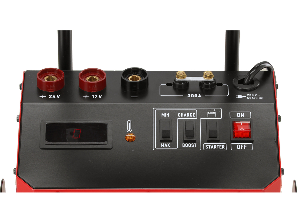 - tryb rozruchu - 12 V/24 V, prąd 520 A (praca przerywana – 3 s włączony, 120 s wyłączony) - funkcja szybkiego wspomagania rozruchu silnika, rozładowanych akumulatorów, skuteczna nawet w niskich temperaturach