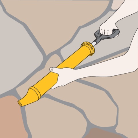 Do skutecznego wypełniania dużych spoin np. przy wykończeniach ścieżek z płyt kamiennych lub murów i innych konstrukcji z kamienia. Wyciskaczem szybko i skutecznie wypełniamy duże nieregularne szczeliny.