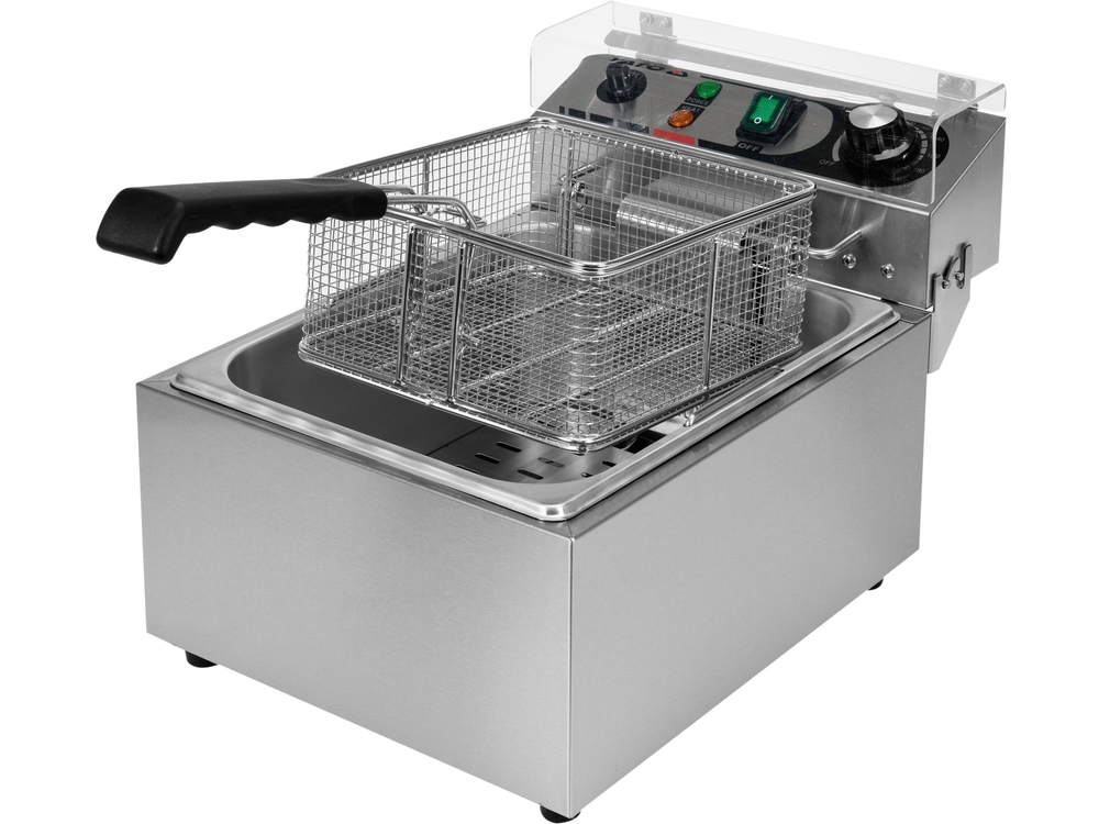 Grzałka o mocy 3,0kW sterowana jest za pomocą potencjometru umieszczonego na panelu sterującym. Możliwe jest ustawienie temperatury pracy w zakresie 60~200℃. Zainstalowane bryzgoszczelny wyłącznik pozwala na wyłączenie urządzenia, bez konieczności odłączania kabla zasilającego z sieci. Dodatkowo panel sterujący posiada osłonę zabezpieczającą wykonaną z bardzo wytrzymałego poliwęglanu, która chroni panel przed zachlapaniem olejem podczas smażenia. Dzięki temu utrzymanie frytownicy w czystości jest znacznie ułatwione. Wyjmowana grzałka ma możliwość powieszenia jej na specjalnym uchwycie w pozycji, w której ściekający olej trafia z powrtotem do zbiornika. Frytownica posiada dodatkowe zbezpieczenie, które automatycznie wyłącza grzałkę w momencie wyciągnięcia jej ze zbiornika. Dodatkowe zabezpieczenie chroni ją przed przegrzaniem, przy temperaturze powyżej 260℃.