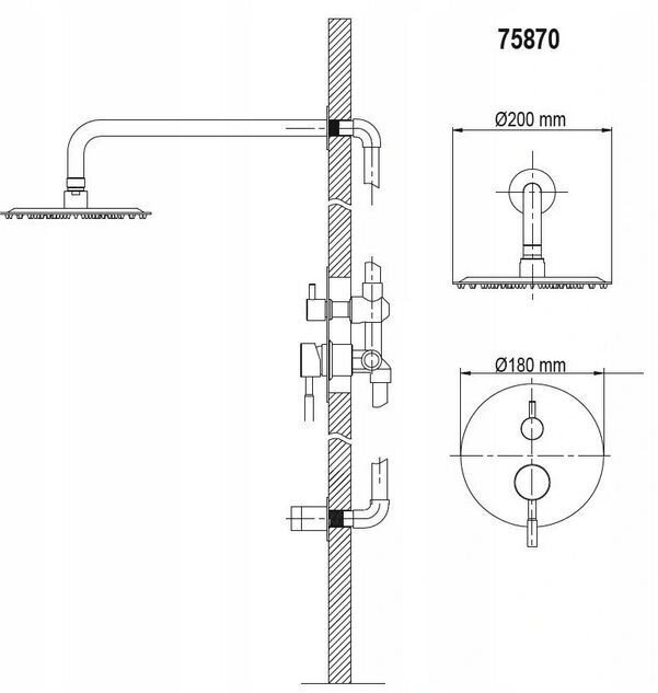 bateria, słuchawka prysznicowa, wąż prysznicowy z uszczelkami, deszczownica, ramię ścienne, przyłącze kątowe z uchwytem
