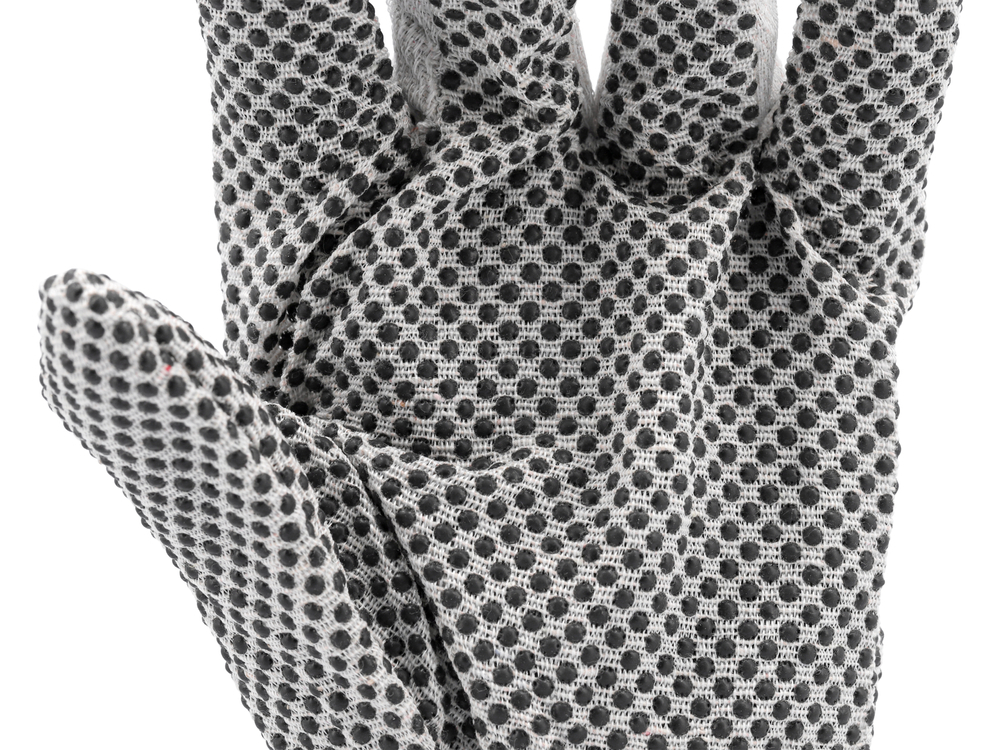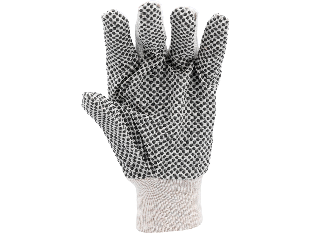 Rękawice robocze do prac porządkowych, transportowych czy ogrodniczych. Wykonane w całości z miękkiej bawełny z nakropieniem w części chwytnej z PVC. Są bardzo przyjemne w dotyku, a nakropienie w cześci chwytnej poprawia trzymanie przedmiotów.