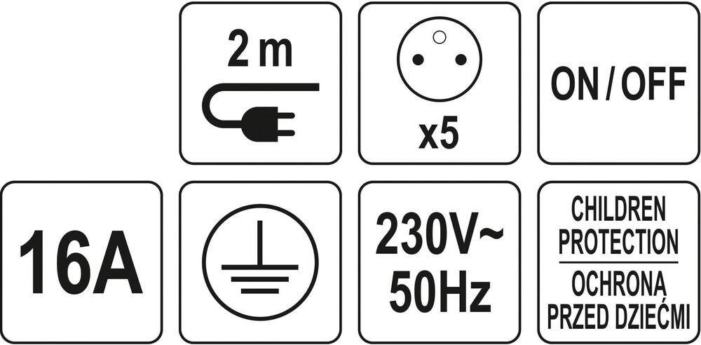 - podświetlany wyłącznik główny oraz indywidualne wyłączniki na każdym gniazdku