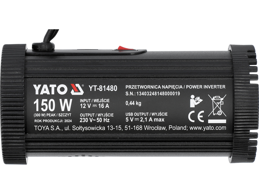 SAMOCHODOWA PRZETWORNICA NAPIĘCIA 12V/230V 150W USB YATO YT-81480