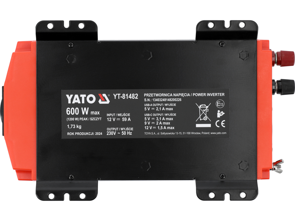 PRZETWORNICA NAPIĘCIA 12/230V 600W CZYSTY SINUS YATO YT-81482