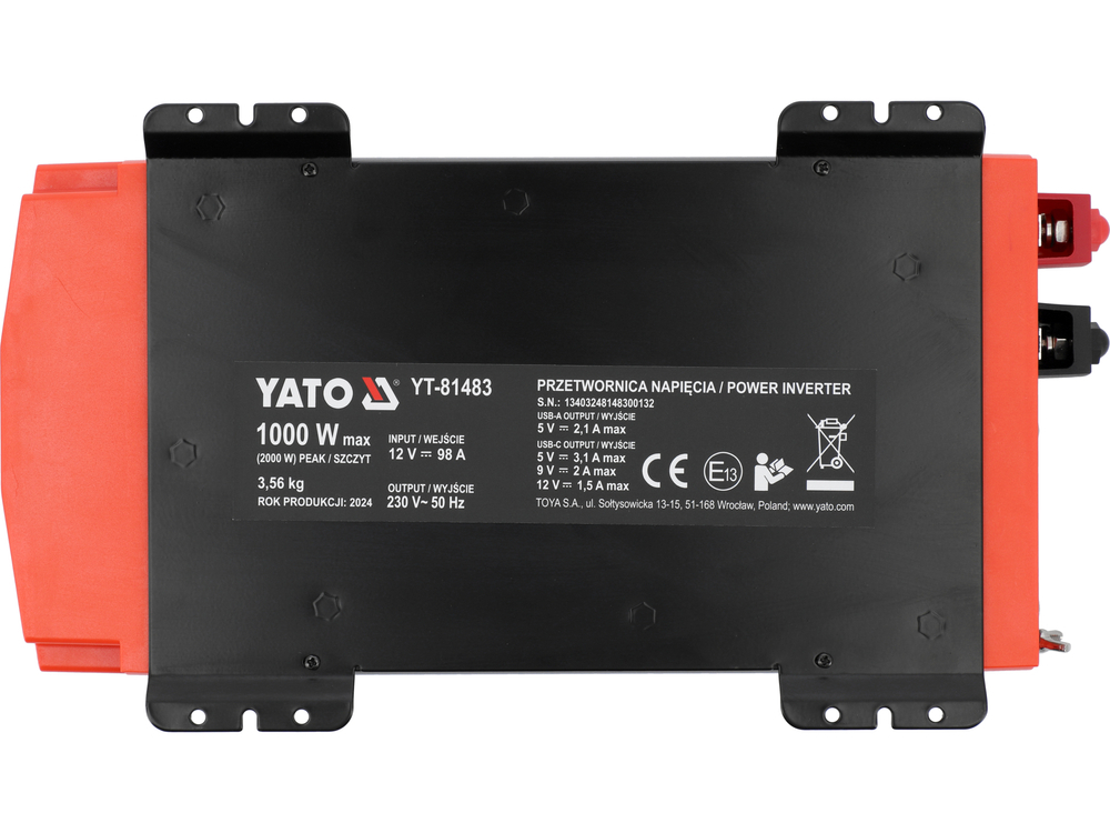 PRZETWORNICA NAPIĘCIA 12/230V 1000W CZYSTY SINUS USB YATO YT-81483
