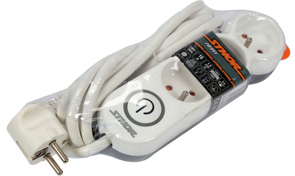 PRZEDŁUŻACZ LISTWA ZASILAJĄCA 3 GNIAZDA Z UZIEMIENIEM WYŁĄCZNIK 3M 1,5MM2 STHOR 72351