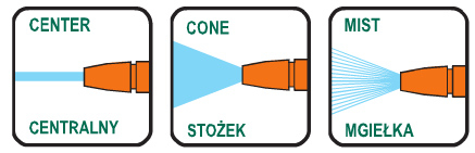 Rodzaj strumienia: centralny, stożek, mgiełka