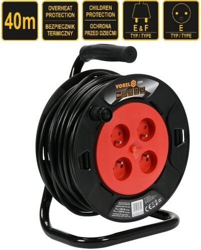 PRZEDŁUŻACZ BĘBNOWY, 4 GNIAZDA, 3X1MM2, 40M VOREL 82684