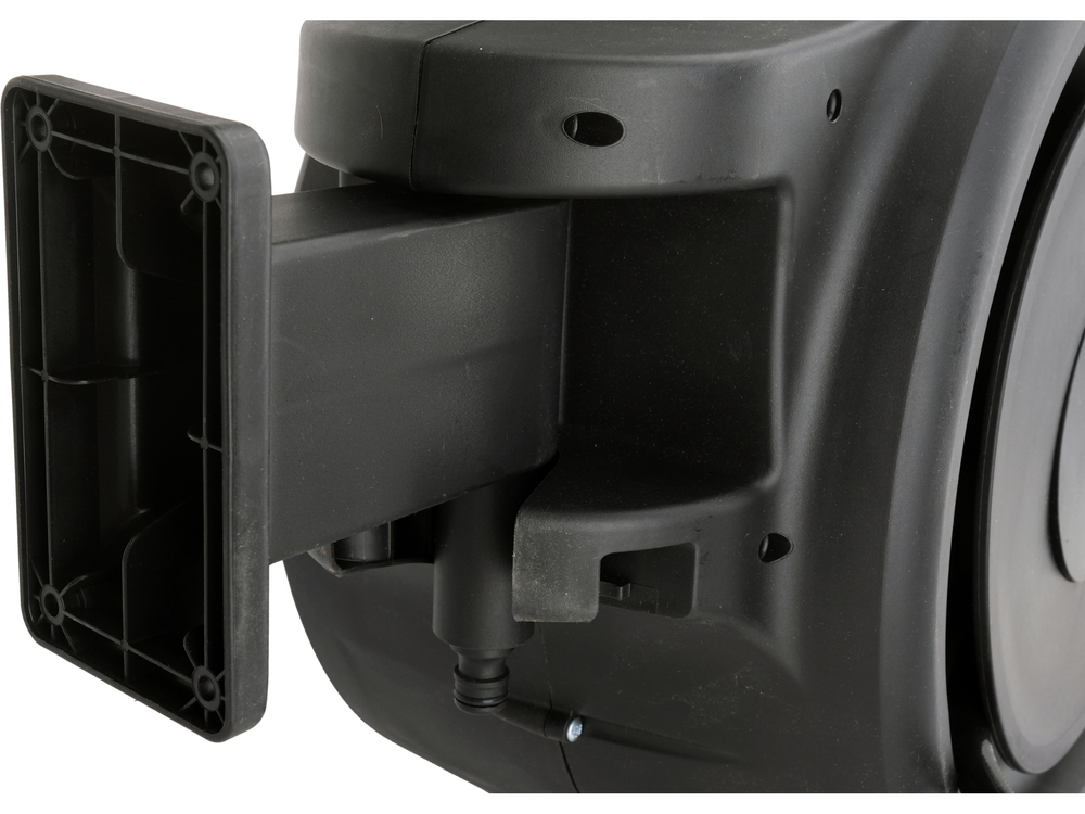Wąż ogrodowy o długości 25 metrów z automatycznym zwijakiem montowanym na stałe do ściany. Ułatwia organizację przestrzeni, przyspiesza wyciąganie i chowanie węża po skończonym podlewaniu oraz przechowywanie go bez zagięć i supłów. Całkowite ukrycie go w bębnie pomaga utrzymać porządek w garażu lub przy domu.