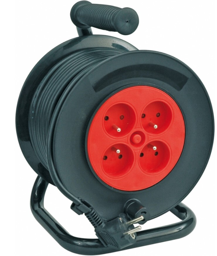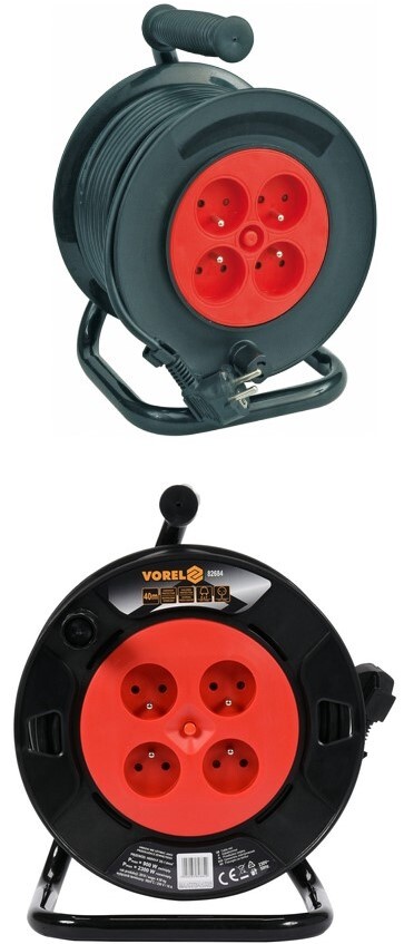 PRZEDŁUŻACZ BĘBNOWY, 4 GNIAZDA, METALOWY STELAŻ 3X1,5MM2, 50M VOREL 82685