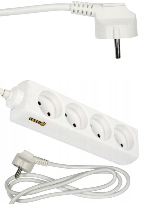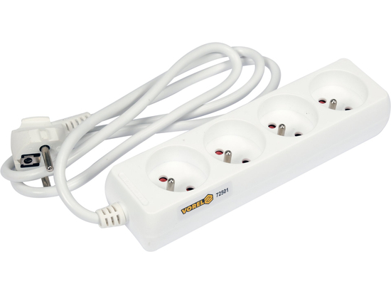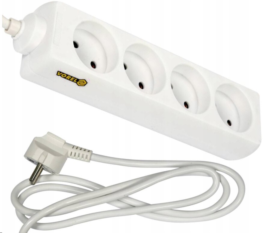 PRZEDŁUŻACZ ELEKTRYCZNY, BIAŁY, 4 GNIAZDA Z UZIEMIENIEM, 1,5 M VOREL 72501