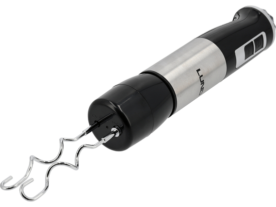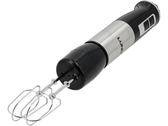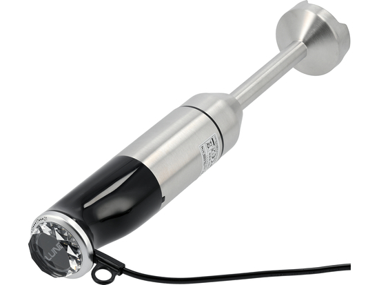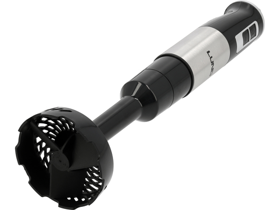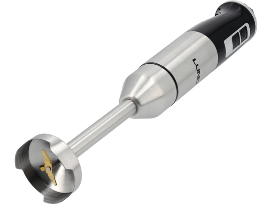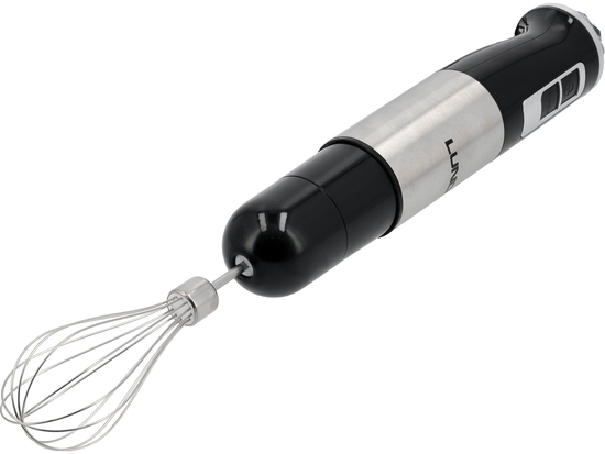 - blender ręczny z poczwórnym, stalowym ostrzem (stal nierdzewna) z tytanową powłoką - zapewnia równomierne miksowanie i gładką konsystencję, idealnie nadając się do zup krem, sosów, purée i koktajli.