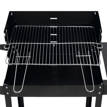 Grill został wyposażony w metalową półkę boczną oraz metalową półkę dolną, które pozwalają na umieszczenie talerzy, przyborów grillowych i wszystkiego, co potrzebne podczas grillowania.