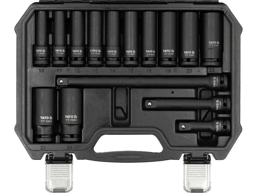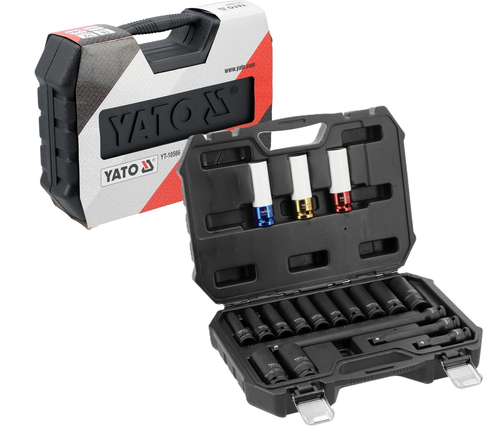 NASADKI UDAROWE DO FELG ALUMINIOWYCH 1/2" + PRZEDŁUŻKI 10-24mm 18szt. kpl. YATO YT-10566