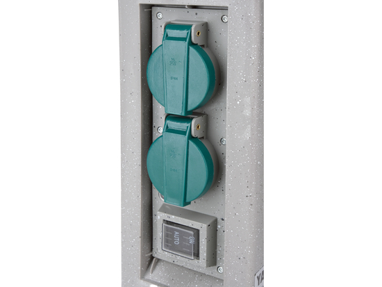 - 4 gniazda 230 V (typ E) z klapkami ochronnymi zapewniają możliwość podłączenia kilku urządzeń jednocześnie oraz ochronę styków przed wilgocią