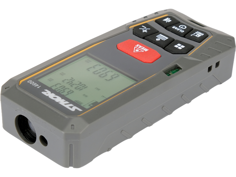 Dalmierz laserowy 14600 przeznaczony do szybkich i precyzyjnych pomiarów odległości wewnątrz pomieszczeń w zakresie od 0,05 do 40 metrów.